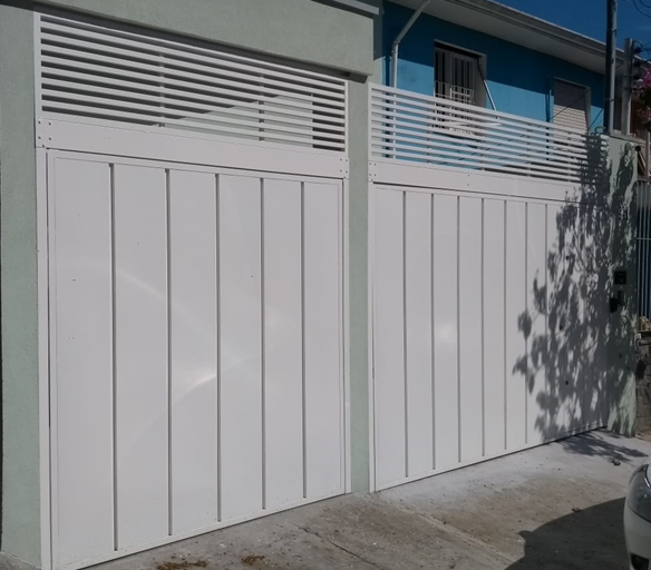 PORTÃO EM CHAPA LISA CARTOLÃO APLICADA NA VERTICAL COM VENTILAÇÃO EM CIMA EM TUBO 20X20 ESPAÇEMNTO DE 30MM