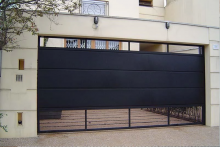 PORTÃO EM CHAPA VINCADA NA HORIZONTAL DO VENTILAÇÃO NA PARTE SUPERIOR E INFERIOR EM TELA MALHA 1¨FIO 12