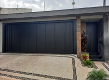 PORTÃO EM CHAPA LISA TIPO CARTOLA COM AS LATERAIS EM CHAPA LAMBRIL NA VERTICAL