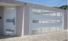 PORTÃO TUBULAR 20X20 NA HORIZONTAL COM APLIQUE EM CHAPA LISA