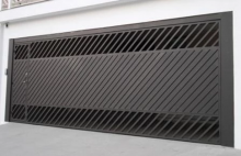 PORTÃO EM CHAPA LAMBRIL APLICADA NA DIAGONAL E COM VENTILAÇÃO NA PARTE SUPERIOR E INFERIOR EM TUBO 30X20 ESPAÇAMENTO DE 70MM APLICADOS NA DIAGONAL