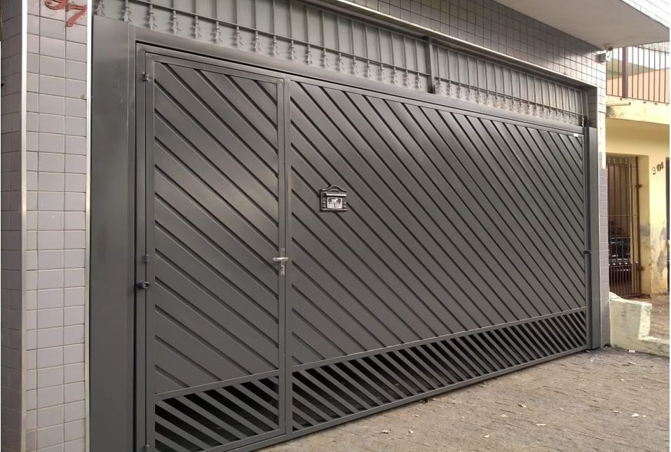 PORTÃO EM CHAPA LAMBRIL APLICADO NA DIAGONAL COM VENTILAÇÃO NA PARTE INFERIOR EM TUBO 30X20 ESPAÇAMENTO DE 70MM