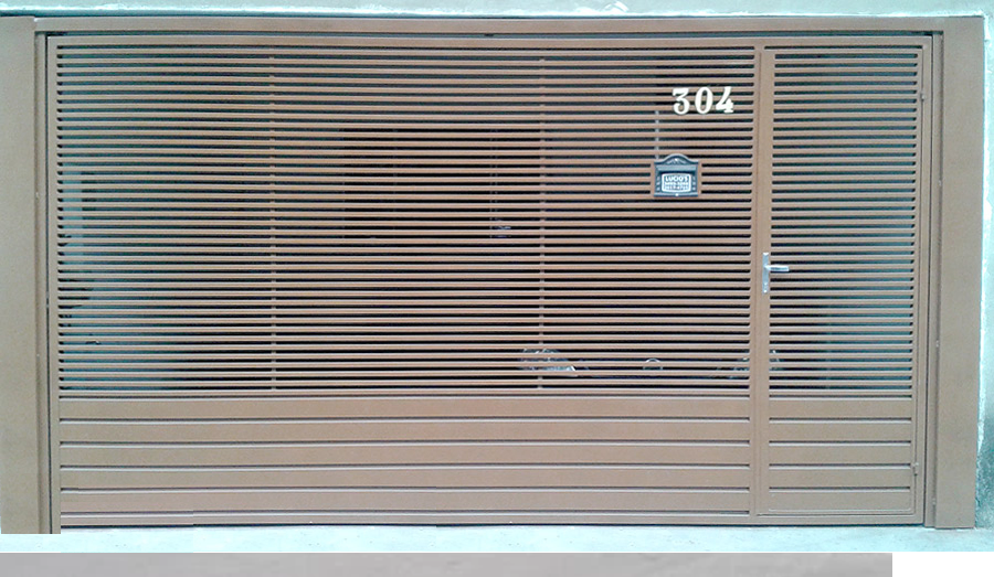 PORTÃO TUBULAR 20X20 ESPAÇAMENTO DE 25MM COM DESENHO E CHAPA LAMBRIL NA PARTE INFERIOR