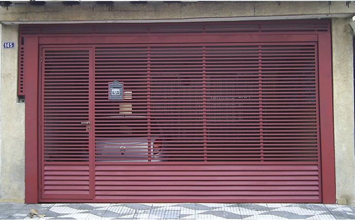 PORTÃO TUBULAR 20X20 ESPAÇAMENTO DE 25MM COM DESENHO E CHAPA VENEZIANA NA PARTE INFERIOR