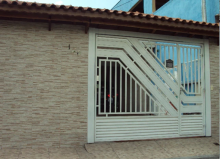 PORTÃO TUBULAR 30X20 ESPAÇAMENTO DE 70MM COM DESENHO E CHAPA VENEZIANA NA PARTE INFERIOR