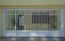 PORTÃO TUBULAR 30X20 ESPAÇAMENTO DE 70MM COM DESENHO E CHAPA LAMBRIL NA PARTE INFERIOR
