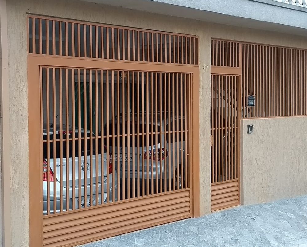 PORTÃO TUBULAR 30X20 ESPAÇAMENTO DE 70MM COM DETALHE EM CHAPA VENEZIANA NA PARTE INFERIOR