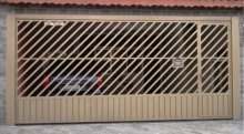 PORTÃO TUBULAR 30X20 ESPAÇAMENTO DE 70MM APLICADO NA DIAGONAL COM DETALHE EM CHAPA LAMBRIL NA PARTE INFERIOR