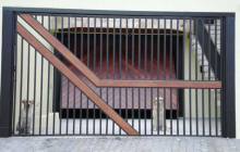 PORTÃO TUBULAR 30X20 ESPAÇAMENTO DE 70MM COM DETALHE EM MADEIRA