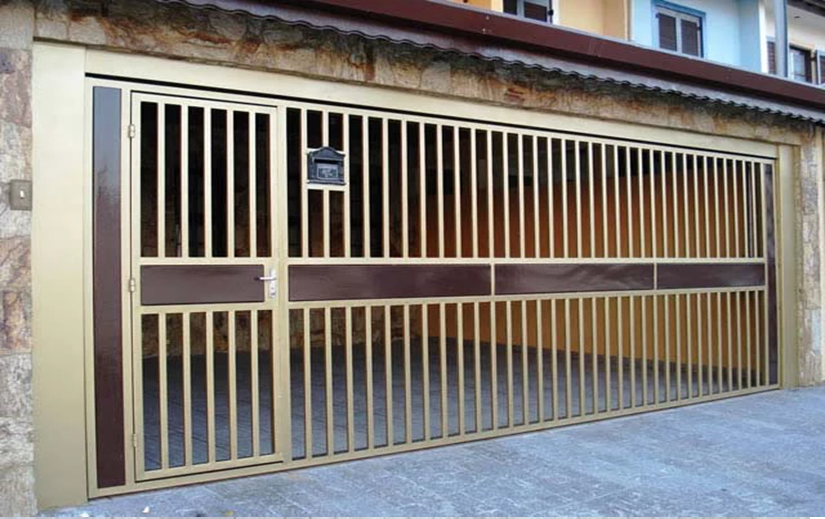 PORTÃO TUBULAR 30X20 ESPAÇAMENTO DE 70MM COM DESENHO EM MADEIRA