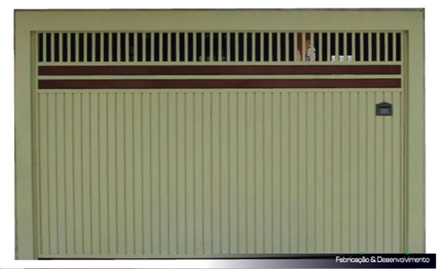 PORTÃO EM LAMBRIL COM DETALHE EM MADEIRA E VENTIALAÇÃO NA PARTE SUPERIOR