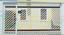 PORTÃO TUBULAR 30X20 ESPAÇAMENTO DE 70MM NA DIAGONAL COM DESENHO EM MADEIRA